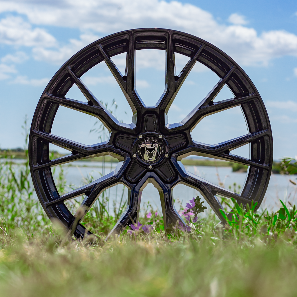 8.5X19 FRONT 9.5X19 REAR WOLFRACE 71 MUNICH GTR GLOSS RAVEN BLACK ALLOY WHEELS