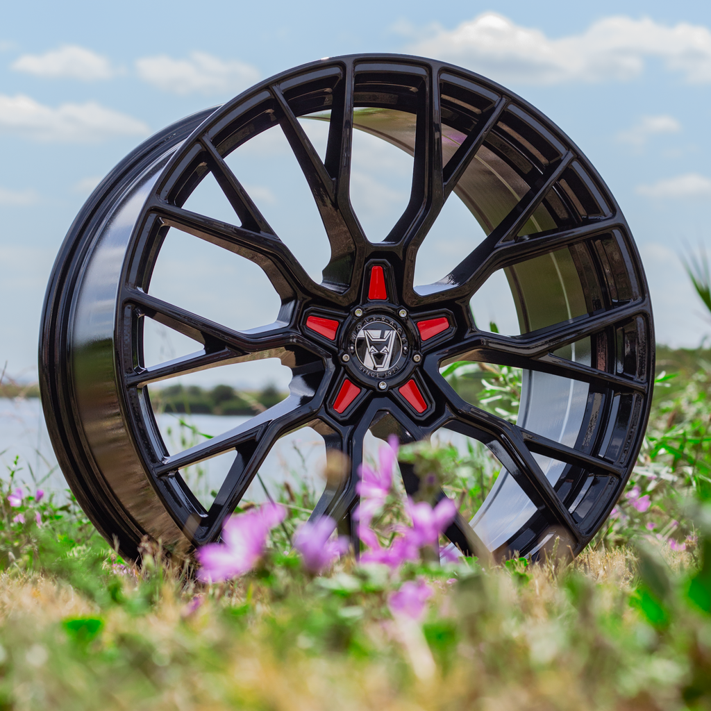 | 4 * 8.5X19 FRONT 9.5X19 REAR WOLFRACE 71 MUNICH GTR GLOSS RAVEN BLACK ALLOY WHEELS FITTED TYRES |